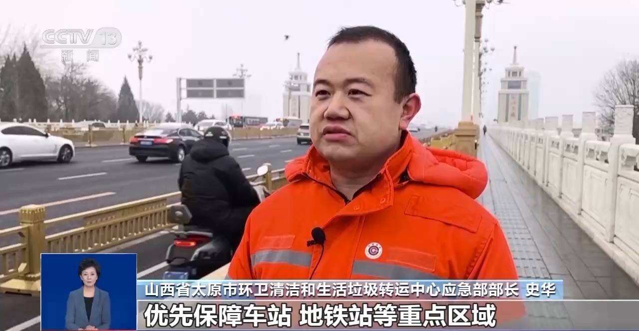 山西省太原市环卫清洁和生活垃圾转运中心应急部部长 史华:优先保障车站、地铁站等重点区域,我们在一些重点路段投入使用了一批手扶式清雪机,这样的小型人工辅助设备,可以大大提高清雪效率。