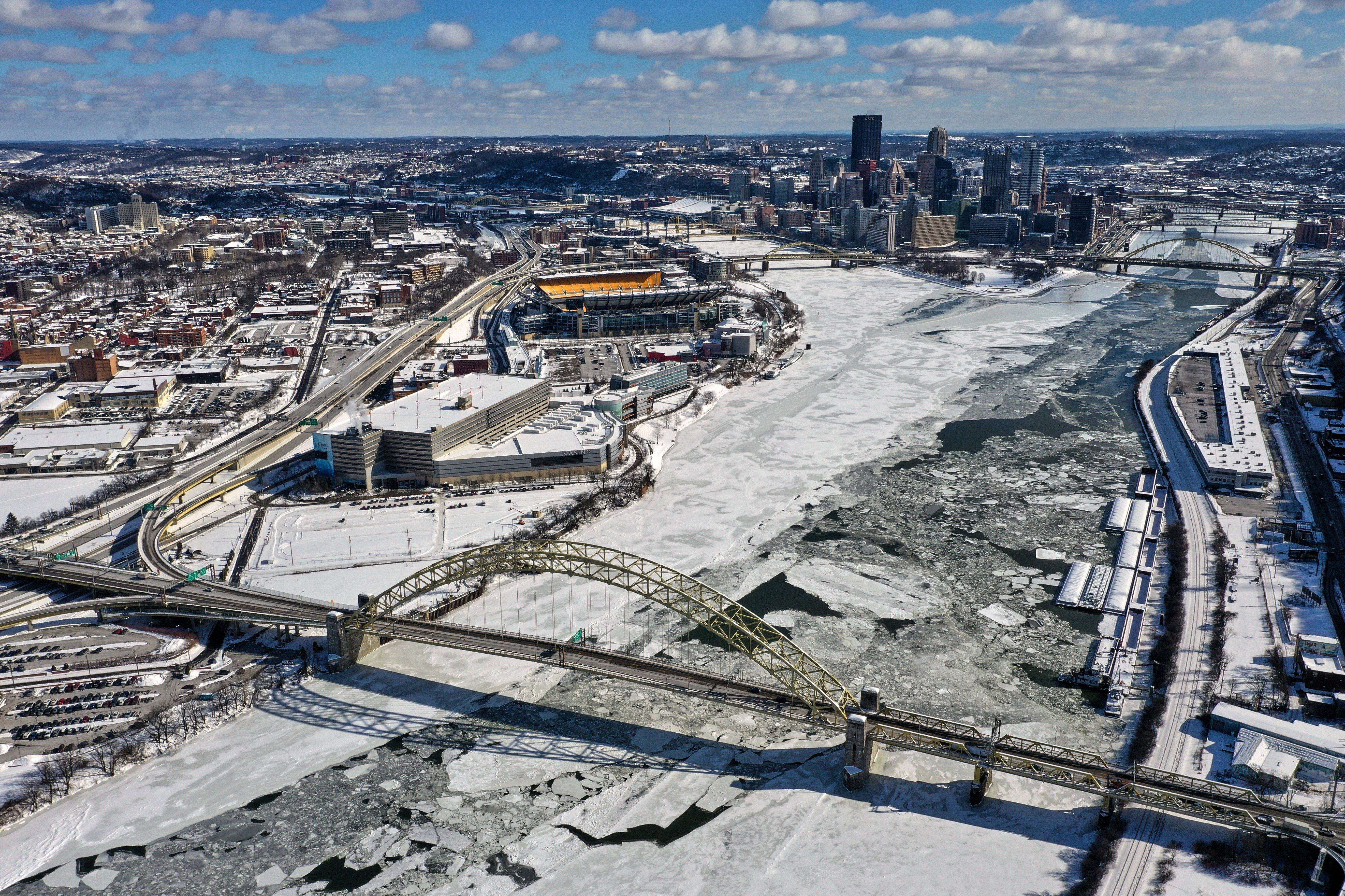 1月30日,在美国匹兹堡,浮冰覆盖阿勒格尼河和莫农加希拉河交汇处。 新华社/美联