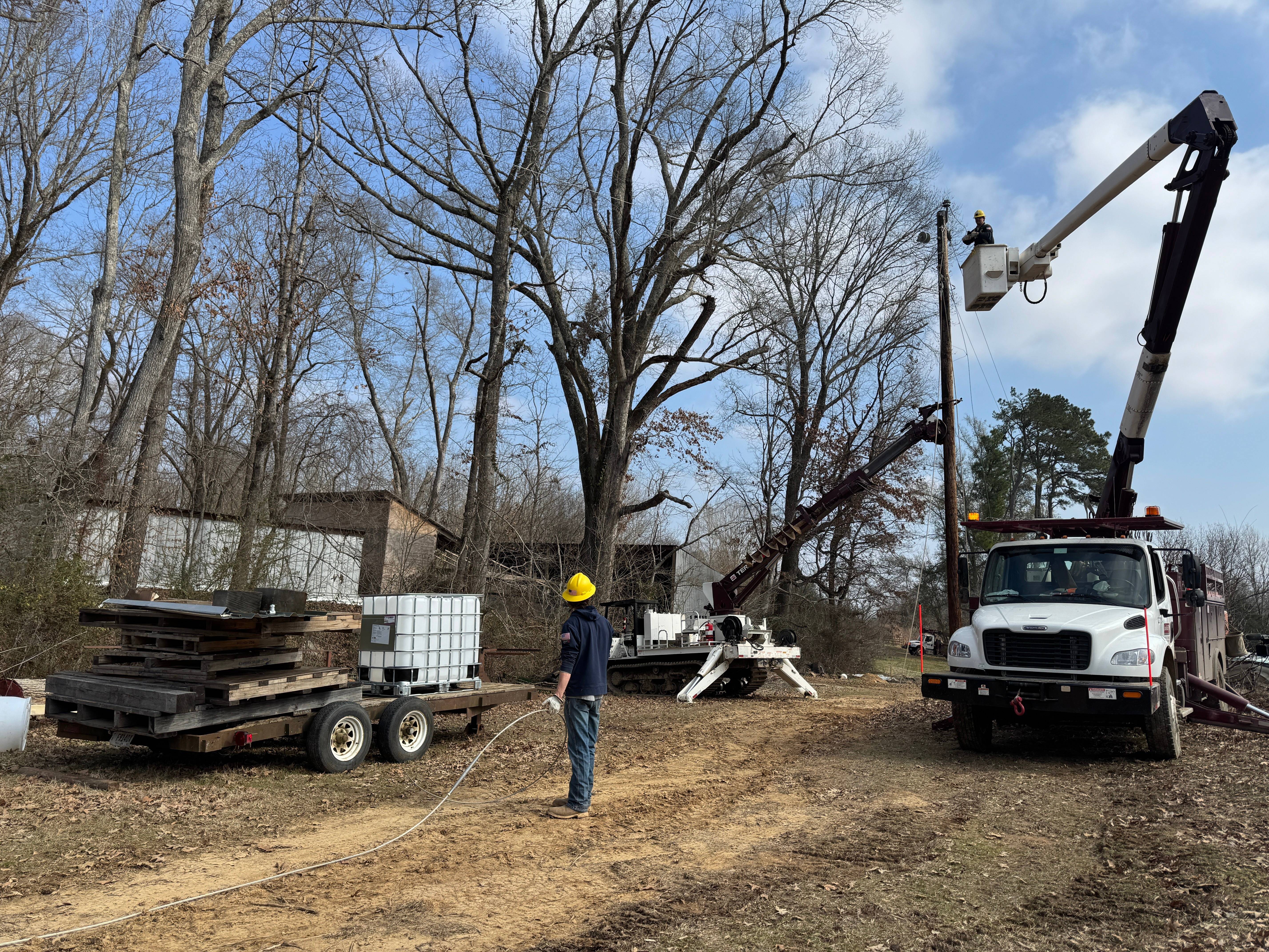 1月30日,在美国本托尼亚,工人检修电力设施。 新华社/美联