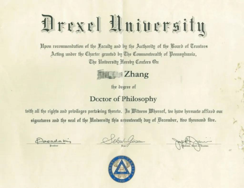 张先生的博士学位证书。