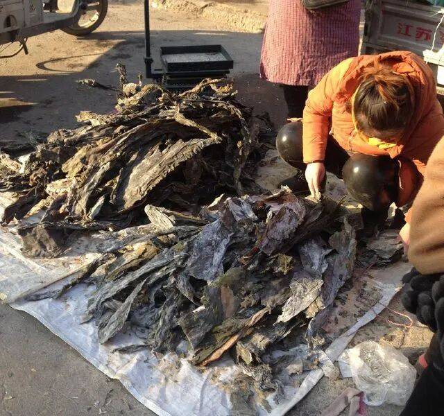 进入寒冬腊月时,集会上卖干菜的菜摊,铺着一块巨大的塑料布,堆放着一捆捆黑不溜秋、皱巴巴的干菜,上面附着着白色的、霜一般的东西。