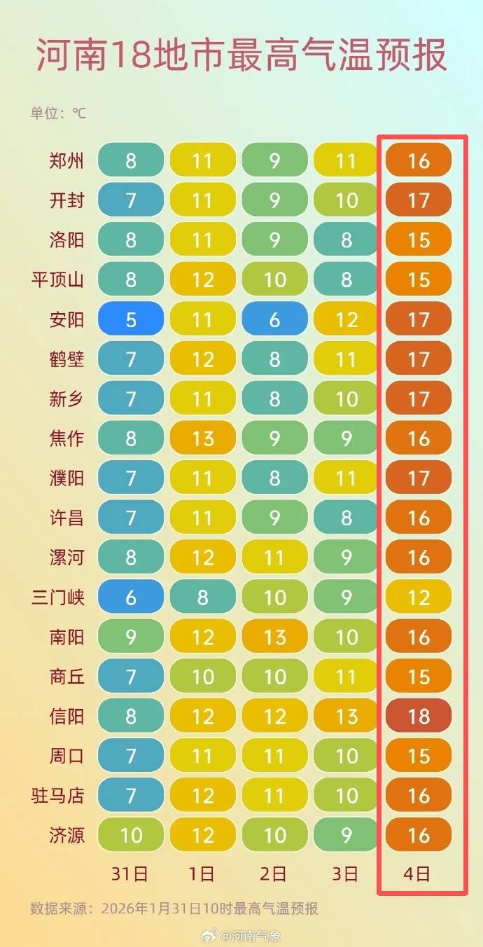 对于河南人来说,2月4日中午前后的体感将由寒冬直接切换至“初春模式”。