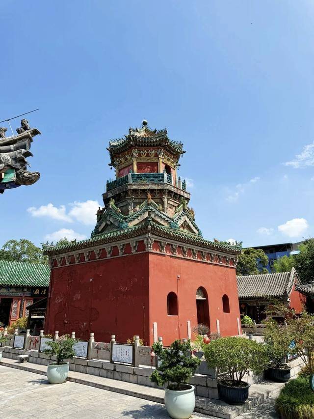 开封延庆观,观内主体建筑玉皇阁,便是契合“下方上圆”的美学设计。底层为仿木砖砌四角方阁,上层为八角攒尖亭阁,穹顶如蒙古包般浑圆。