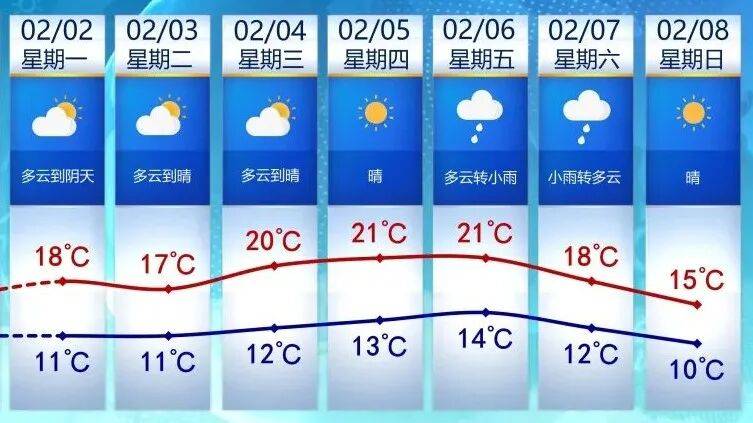 2月5日城区最高气温可达21℃