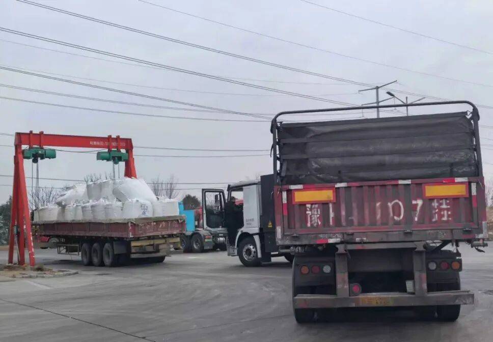▲1月16日,货车更换电动车头后顺利进入河南江河纸业公司。新京报记者 李英强 摄