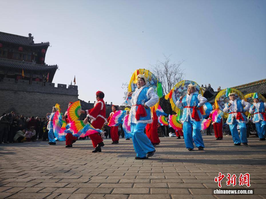 2月1日,参加2026年海峡两岸青年匹克球交流活动的台胞来到河南浚县。适逢新春佳节将至,大家沉浸式逛庙会、观社火、品美食、体验非遗制作,共同感受中原年味。图为社火表演。中新社记者 李超庆 摄