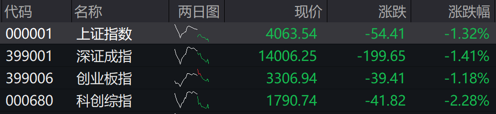 11:31 A股午盘丨三大指数均跌超1%