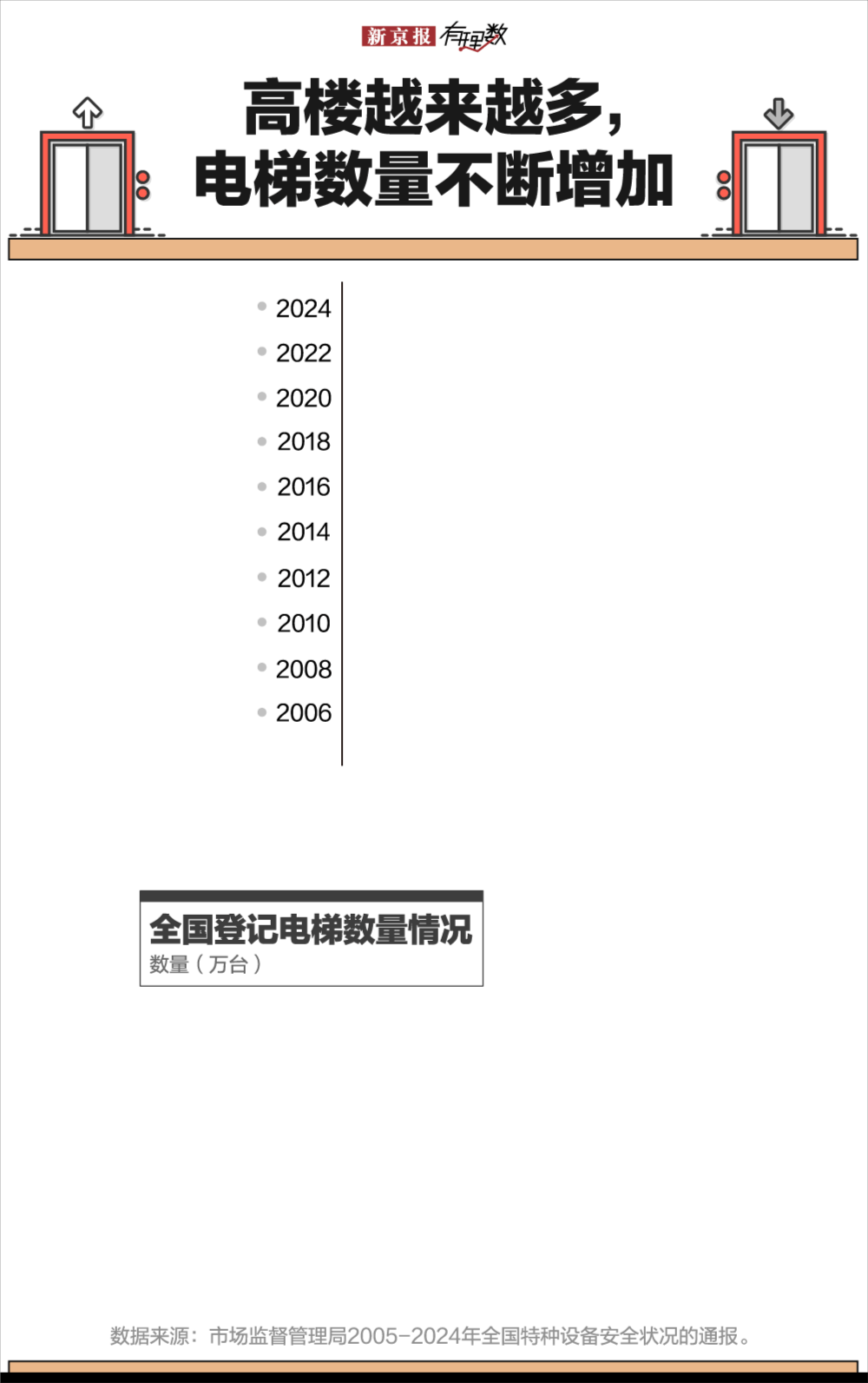 截至2024年底,全国电梯登记总量达1153.24万台。从近年的数据来看,全国每年新增电梯约100万台,电梯数量越来越多,安全问题也愈发突出。