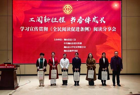 活动尾声,王仲秋为四位阅读分享人及两位诵读老师赠送书籍,勉励职工们将阅读融入生活与工作。本次活动以书为媒,以阅聚力,不仅为职工搭建了交流分享的平台,更通过多元形式深化了对全民阅读战略的认识,有效激发了职工的阅读热情,为培育时代新风、提升职工素养、助力确山高质量发展注入了强劲的文化动力。
