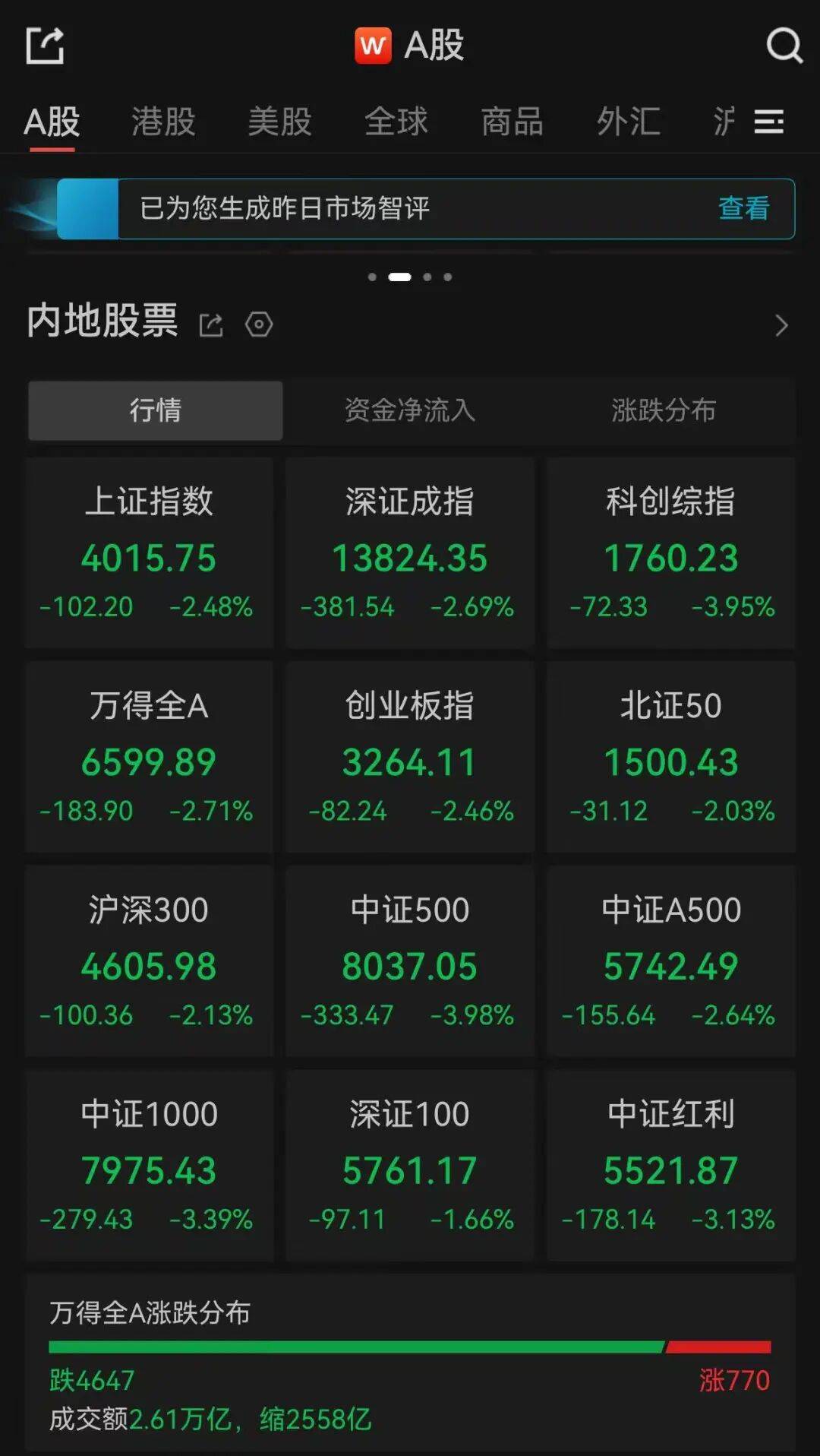 2日,A股三大指数开盘涨跌不一,随后震荡下行,集体大跌超2%。截至收盘,沪指跌2.48%,深证成指跌2.69%,创业板指跌2.46%。全市成交额2.61万亿,超4600只个股下跌。