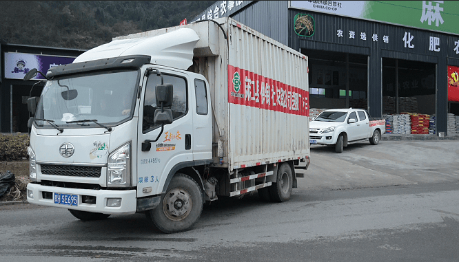农事服务站配送车正在配送蓝莓有机肥(麻江县融媒体中心供图)