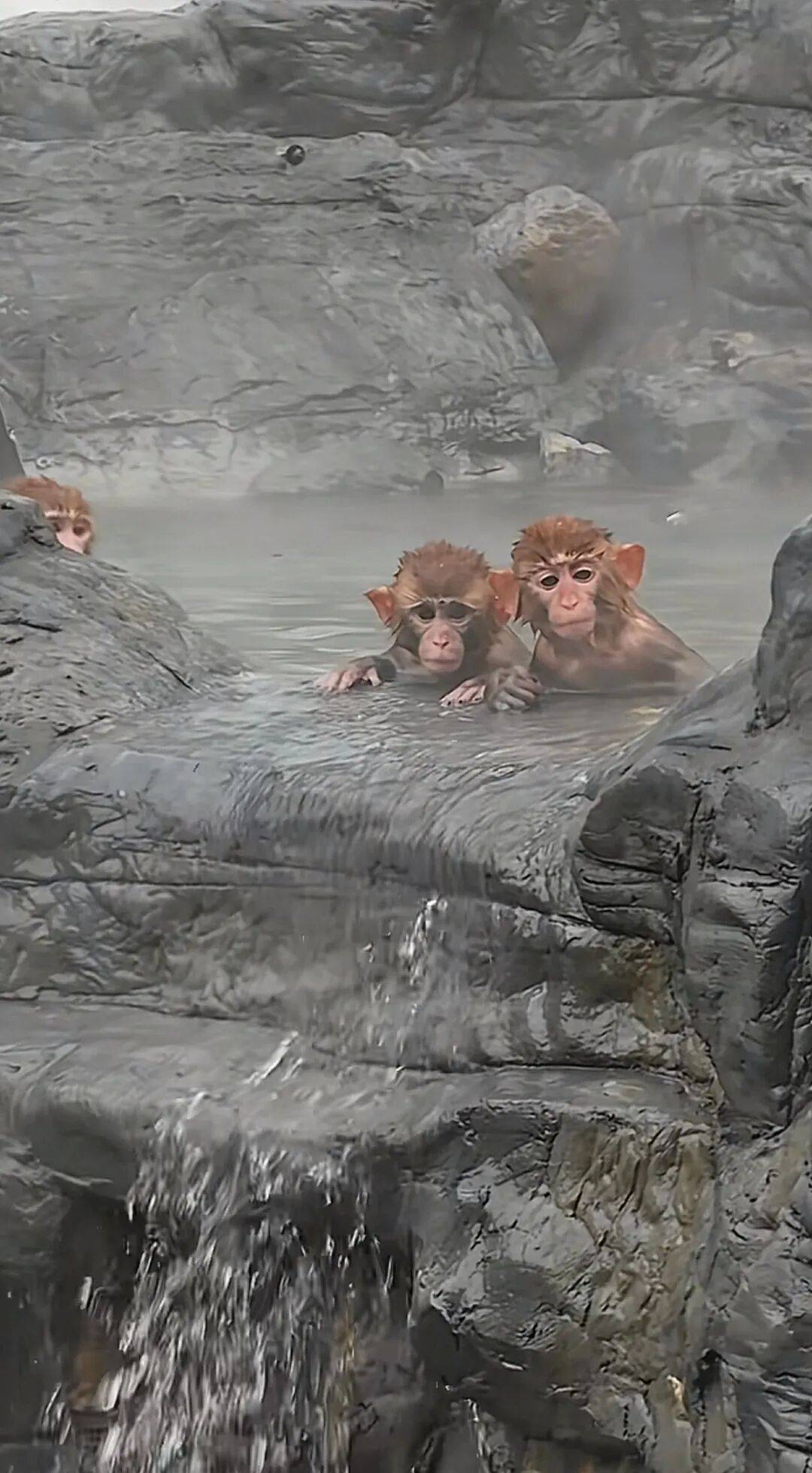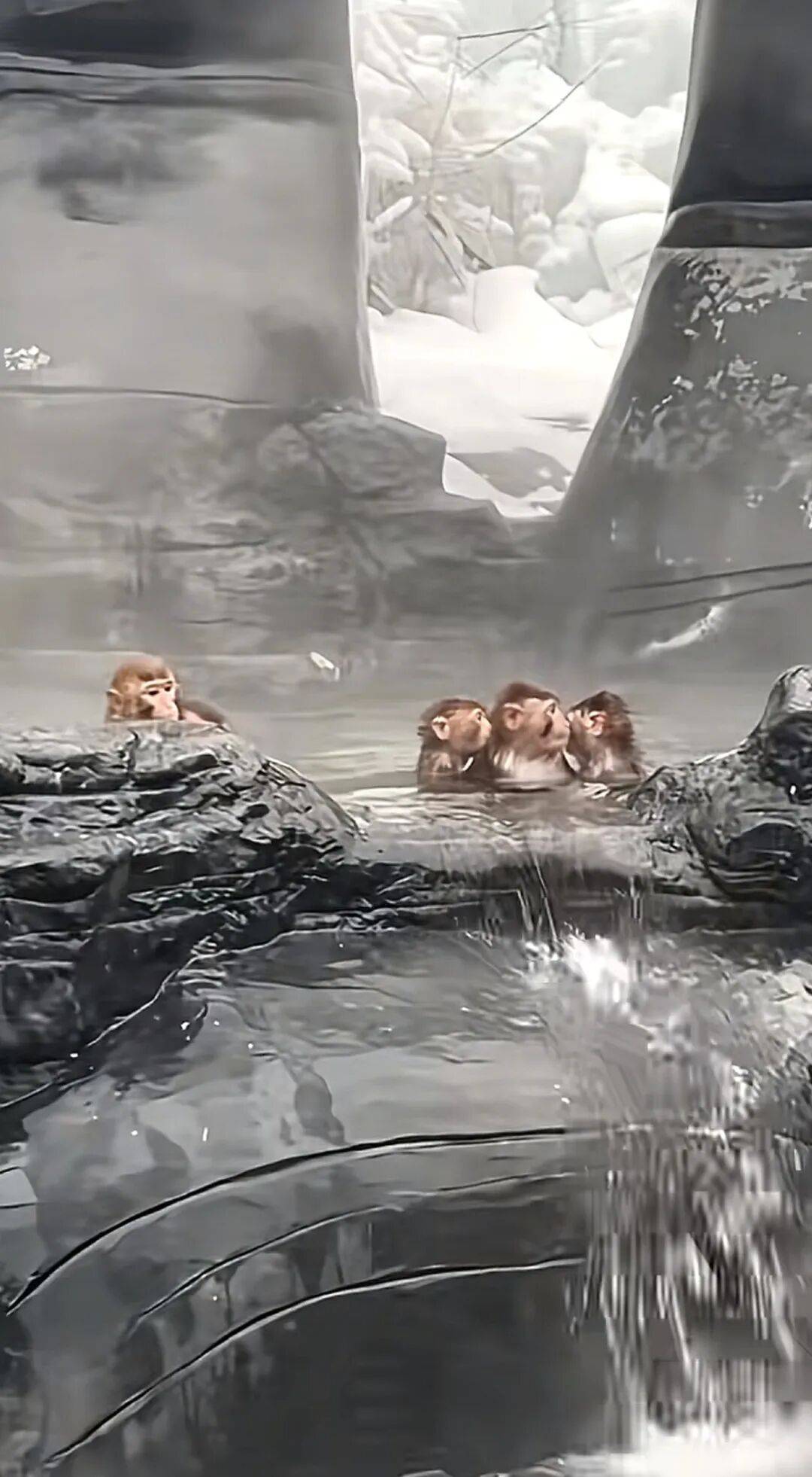 原标题:《河南云台山景区猕猴泡温泉养生,游客偶遇感叹“进化得刚刚好”,景区:温泉区还改建了“五指山”,附近有取暖屋》