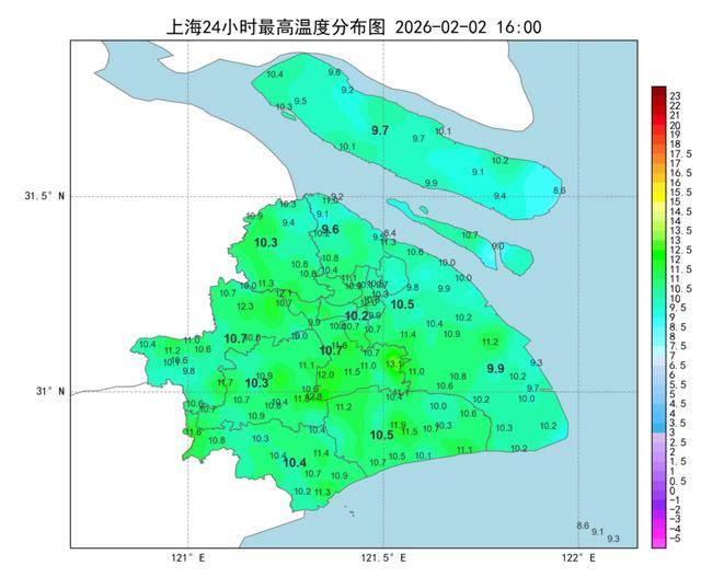 今天早晨仍有寒意,大部分地区最低气温在-2℃~3℃之间。白天晴到多云,气温较昨天回升,闵行最高气温10.7℃为全市最高。