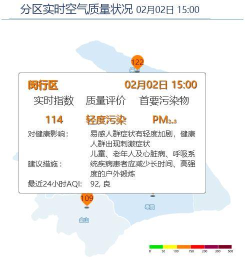 闵行区AQI为114,轻度污染,