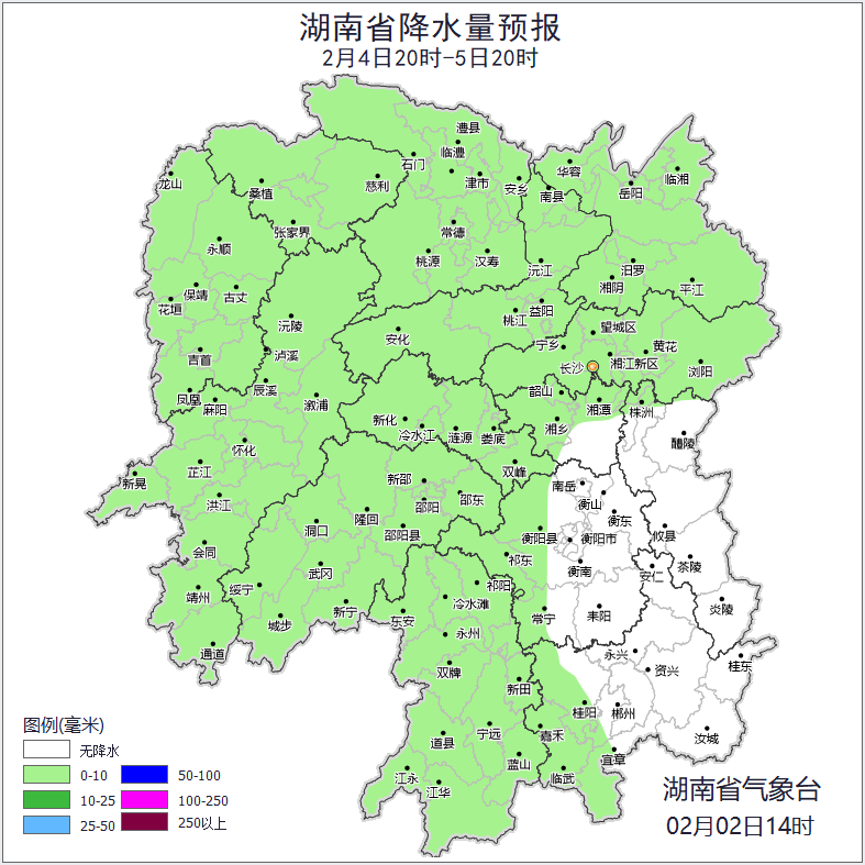 3日晚上至4日白天,全省多云;南风2~3级;最低气温5~9℃;最高气温湘西、湘北14~18℃,其他地区19~22℃。