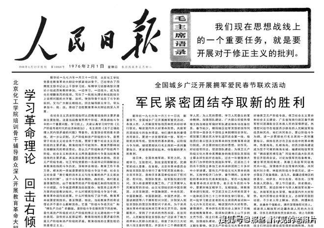 1976年2月1日《人民日报》全国城乡广泛开展拥军爱民春节联欢活动 军民紧密团结夺取新的胜利