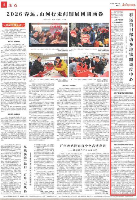 还刊发《2026春运,山河行走间铺展团圆画卷》,报道了圃田站是中原中欧班列发送量、出口量最大的铁路运输始发站。春运期间,中欧班列(郑州)也将作为“年货班列”为春运物流注入新活力。