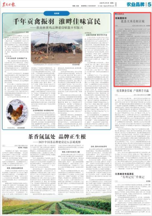 还刊发《河南濮阳市范县大米亮相京城》,报道了1月28日,“豫农优品”进驻北京市场暨“五进”(进部委、进军营、进景点、进学校、进社区)活动启动仪式在北京举行。启动仪式上,河南濮阳市范县就“范县大米”县域公用品牌进行了专场推介。
