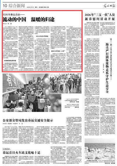 今日出版的《光明日报》刊发《2026年春运启动——流动的中国 温暖的归途》,其中报道了:春运期间,河南郑州东站候车大厅“春运见礼文明启行”主题活动让旅途成为一场沉浸式的文化体验。