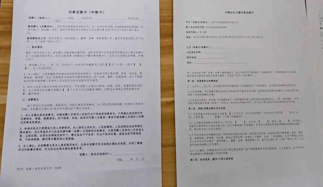 一名在前几日就曾到线下与杰我睿交涉过的客户陈小姐(化名)称,自己在线下看到过兑付前需要签署的几份协议,其中就包含一份“刑事谅解协议书”,许多受损者认为,签署了这份协议,意味着无论杰我睿最终兑付金额为多少,都不能再追究其法律责任,因此许多人没有签署这份协议。
