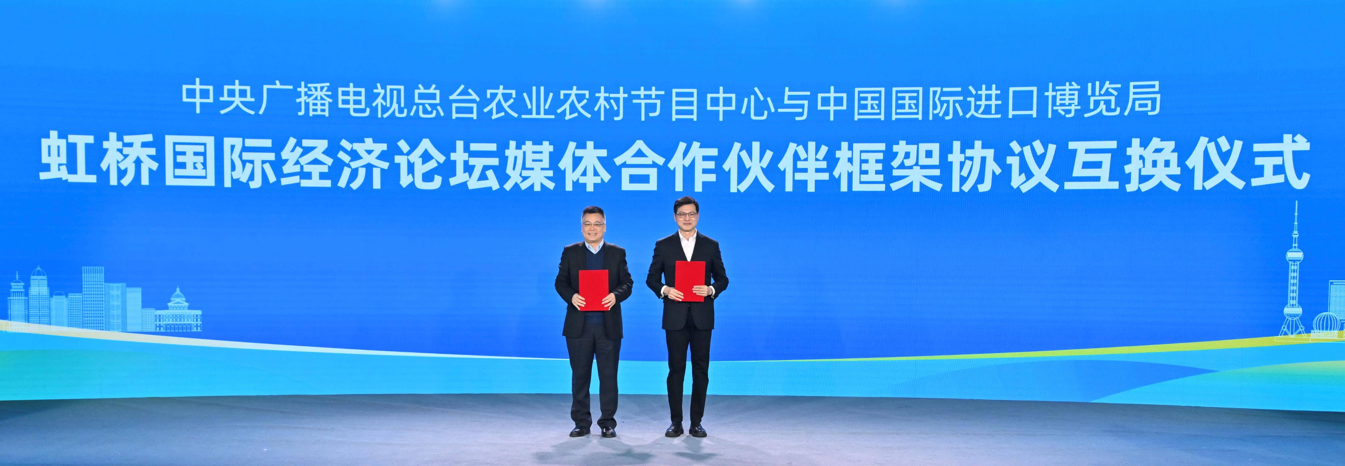 活动现场,中央广播电视总台农业农村节目中心与中国国际进口博览局达成合作。双方将围绕“虹桥国际经济论坛”展开务实合作,向世界讲好中国农业故事。