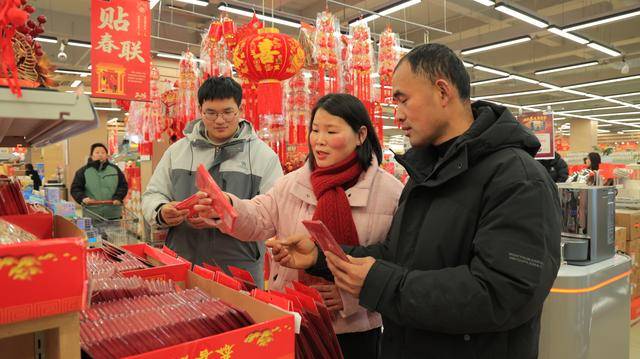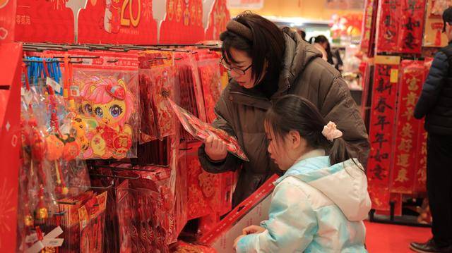 各大商超更是新春氛围拉满,身披红绸的生肖马卡通造型憨态可掬,引得市民争相合影。货架上,马年坚果礼盒、糖果礼包琳琅满目,马元素生肖玩偶、挂件等饰品格外抢手,孩子们捧着心仪的饰品爱不释手,蹦蹦跳跳的模样为新春更添童趣。超市工作人员身着红色工装,忙着补货理货、热情导购。