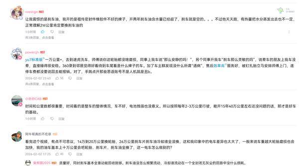 当这组数据晒在网上,网友们的讨论瞬间炸开了锅。有人调侃 “笑死,开十年都开不到 26 万”,也有油车车主感慨 “我的油车十万公里就换轮胎、刹车片、刹车油了,这电车 26 万居然都没换”,懂行的网友则解释 “电车基本靠动能回收刹车,刹车油不怎么流动,刹车片损耗也小,加上天天跑有热量蒸发水分,刹车油含水量都没超标”。