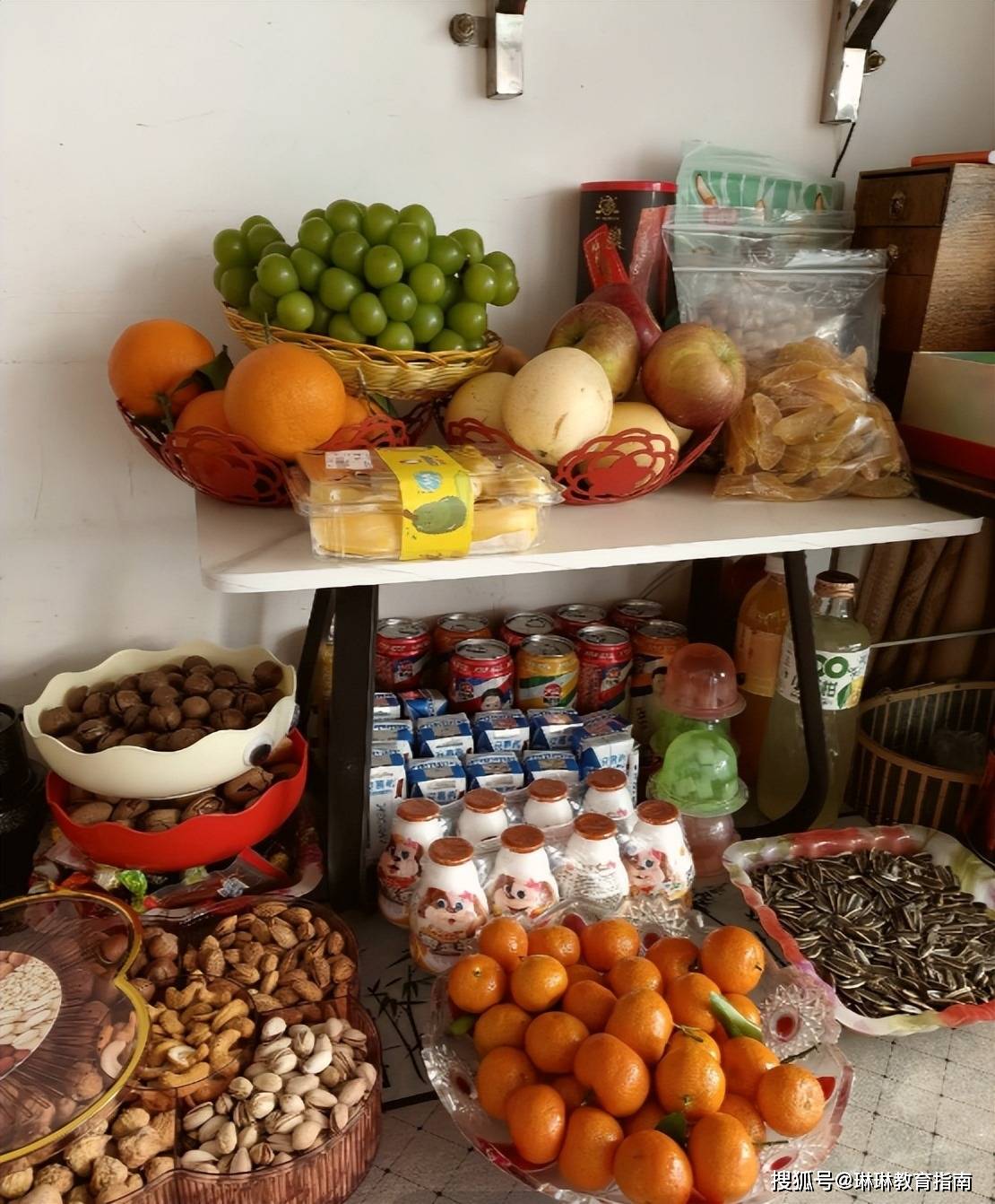 但最令人羡慕的,还是这位家长给自家大学生孩子准备的零食区域,书桌上摆满了孩子爱吃的各种零食、水果和饮料,从坚果瓜子到青提橘子,还有各种饮料酸奶,这一块小区域,别说大学生看了归心似箭,连小学生都要馋得流口水了。