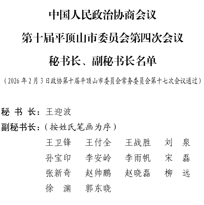 中国人民政治协商会议第十届平顶山市委员会第四次会议秘书长、副秘书长名单