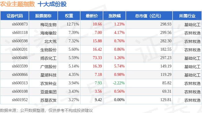 资金流向方面,农业主题(000122)指数成份股当日主力资金净流出合计3.15亿元,游资资金净流出合计1126.45万元,散户资金净流入合计3.26亿元。成份股资金流向详情见下表: