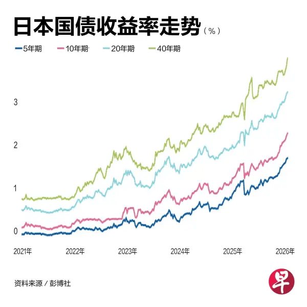 当前局面是:高市早苗既要推动财政宽松,可日本赤字已相当严重,若继续加大举债,将导致长期国债被大幅抛售。近期,日本10年、20年、30年、40年期公债自利率均创历史新高,这在全球引发震动。