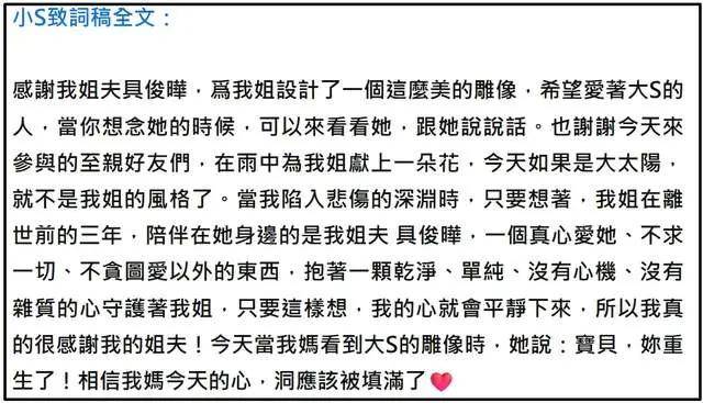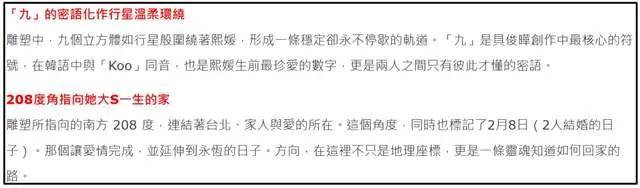 在具俊晔为大S立下的墓碑上写着:“这是一座为熙媛媛而存在的宇宙。”后文是解释为何雕塑如此。看到这是不是觉得缺少了什么?
