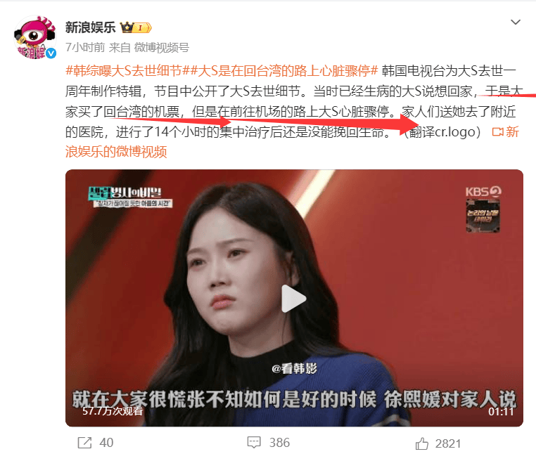 不仅如此,节目上还曝光了大S的真正死因:当时已经启程准备返回家中治疗,但遭遇大S心脏骤停,就近送医抢救14小时未能挽回。