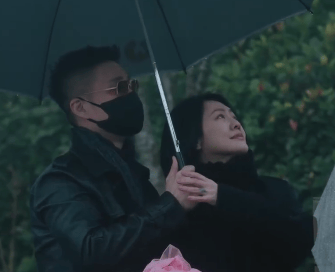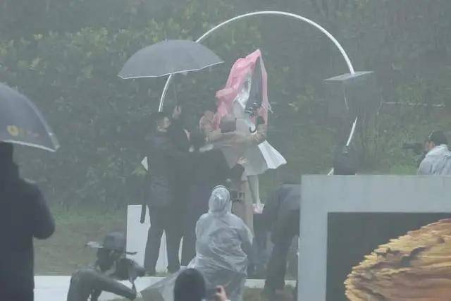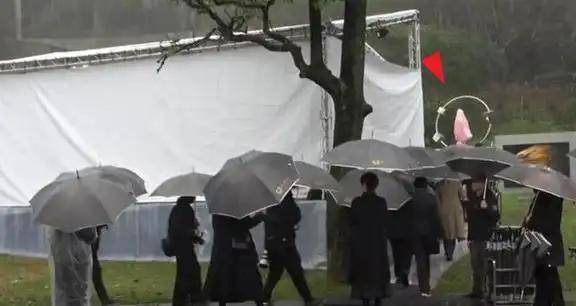 随后仪式开始,在大雨和全场的黑色伞的衬托下,大S的雕塑被粉色的纱盖住。随后,由具俊晔掀开,露出了她的样貌。