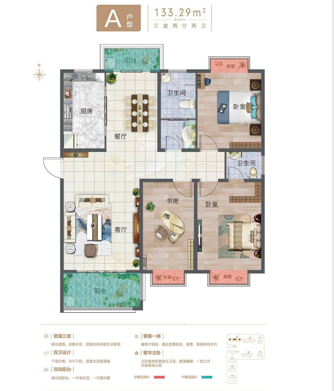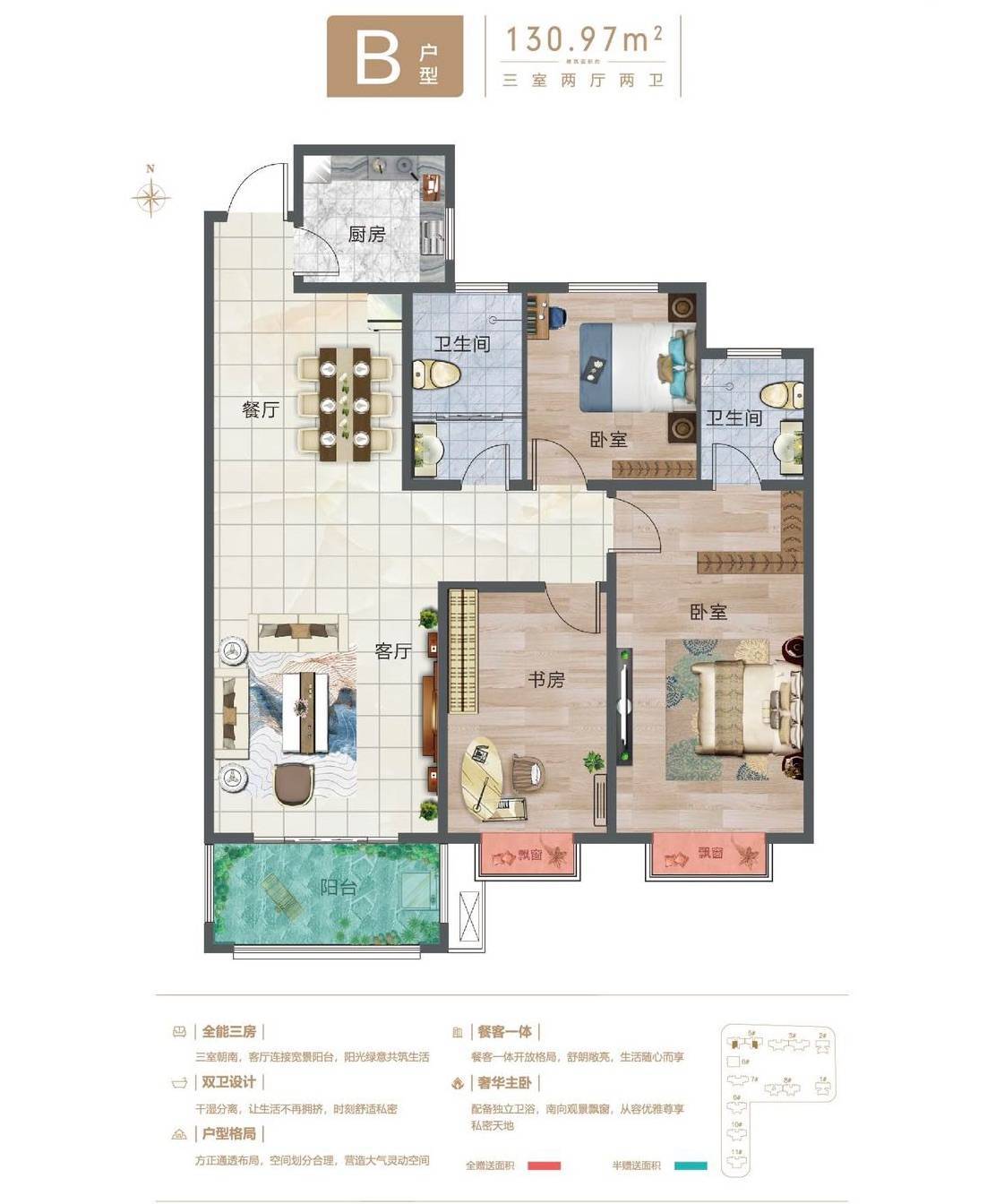 全能三房丨方正布局丨双卫设计丨餐客一体丨套房主卧