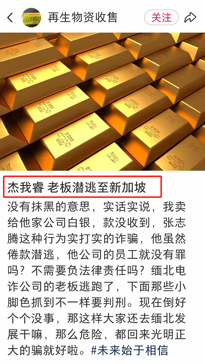 然而如今,她1克也见不到了,杰我睿还倒欠她40多万交易款无法提现。