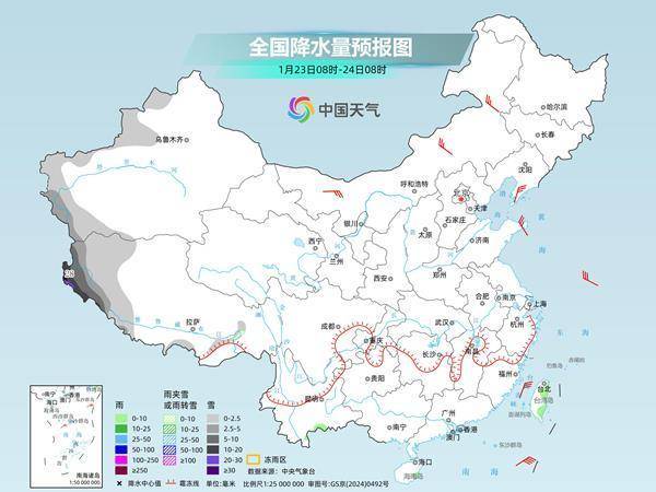 今天,南方雨雪继续缩减,湖南、贵州、江西等地仍有冻雨。明后天,中东部大部再次进入雨雪稀少的状态,新疆、西藏西部等地降雪增多。