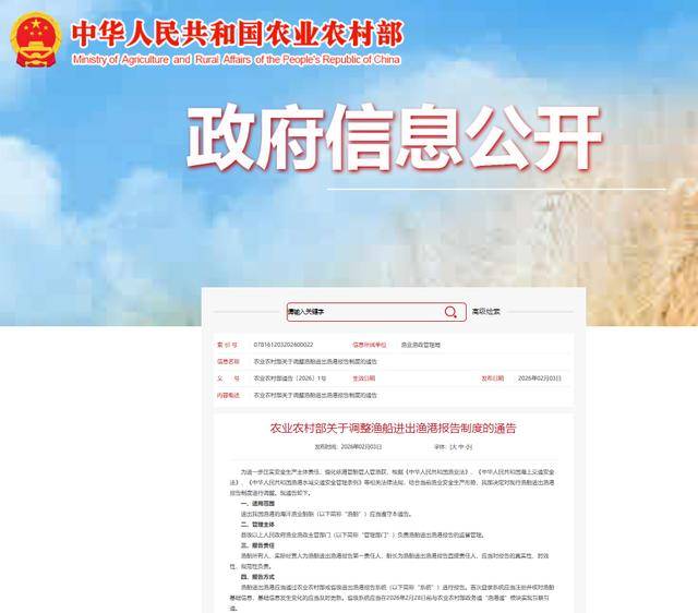 农业农村部关于调整渔船进出渔港报告制度的通告