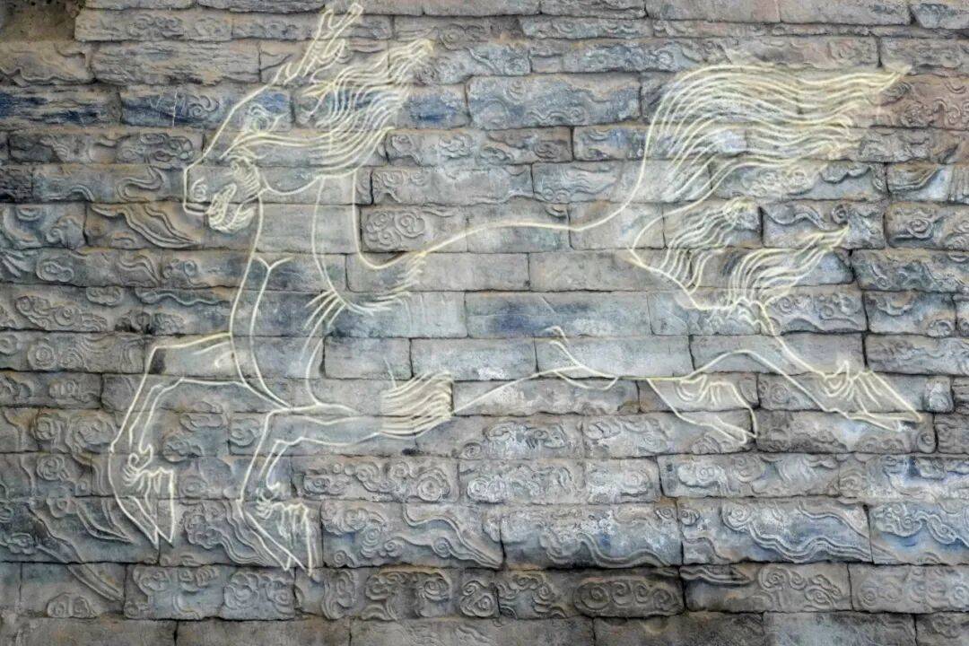 ▲州桥堤岸石壁之上依然清晰可见的海马瑞兽图。