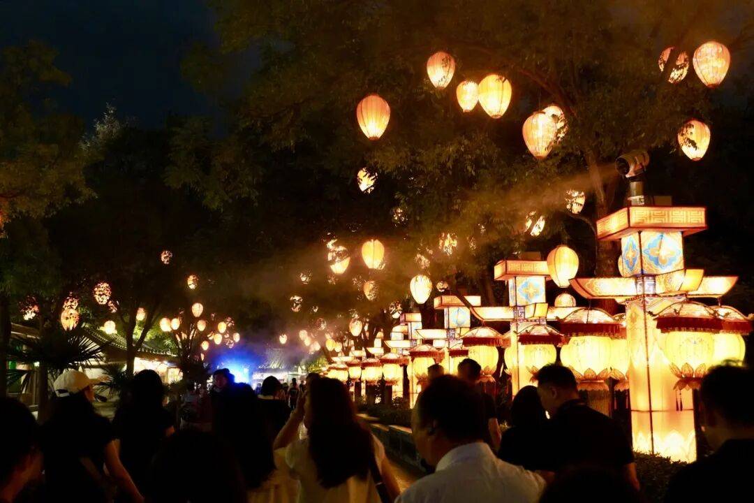 ▲夜幕下清明上河园内的花灯街道,游人行走期间,恍若回到大宋。