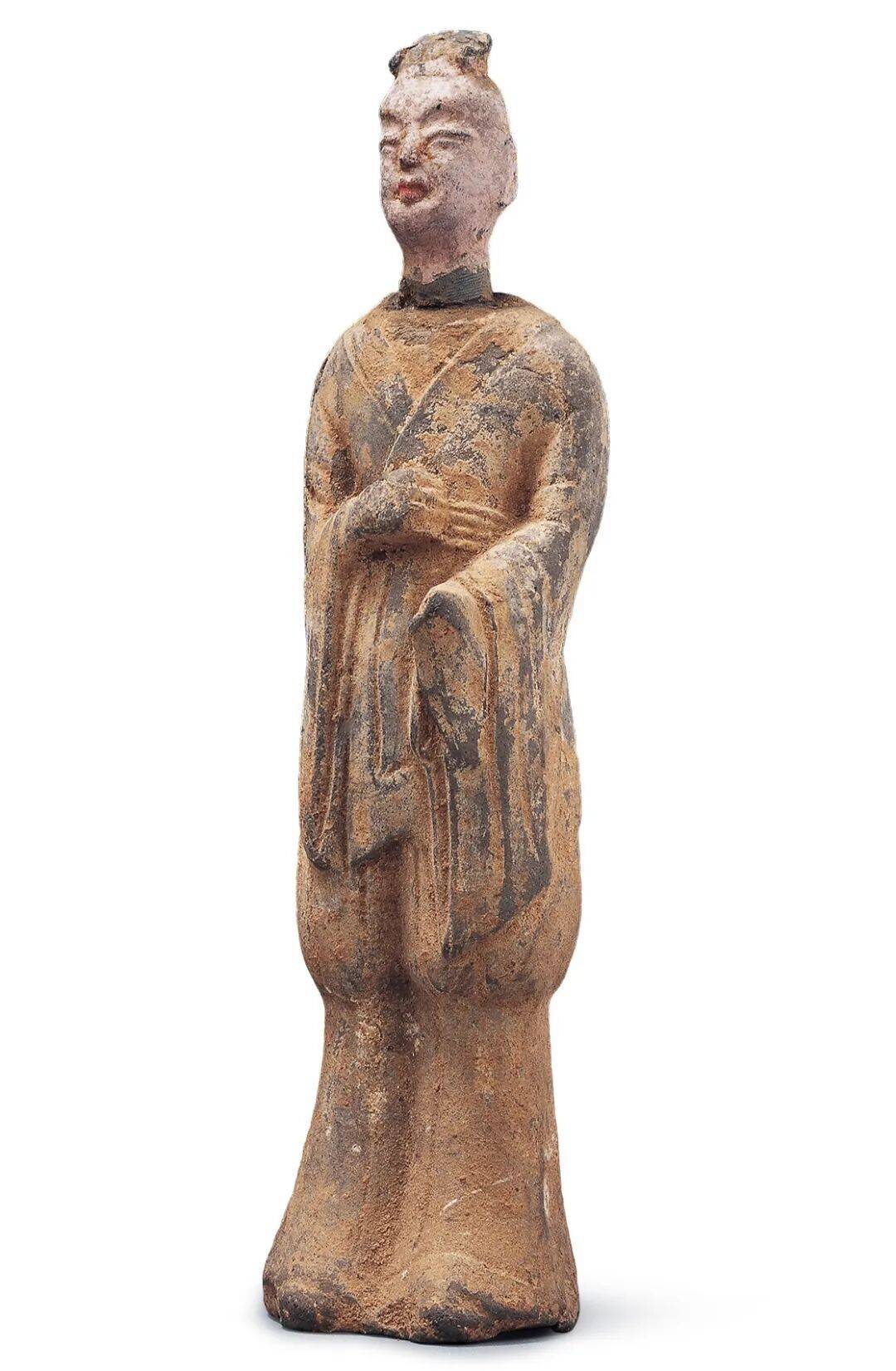 ▲洛阳市元邵墓出土的北魏侍从陶俑。墓主人去世时,孝文帝改革已有20余年,故侍从俑的穿着完全模仿南方汉族官员,即头戴束发小冠,上衣下裤,上衣之襟从左向右穿,和披发左衽的北方少数民族正好相反。(图片来源:中国国家博物馆官网)