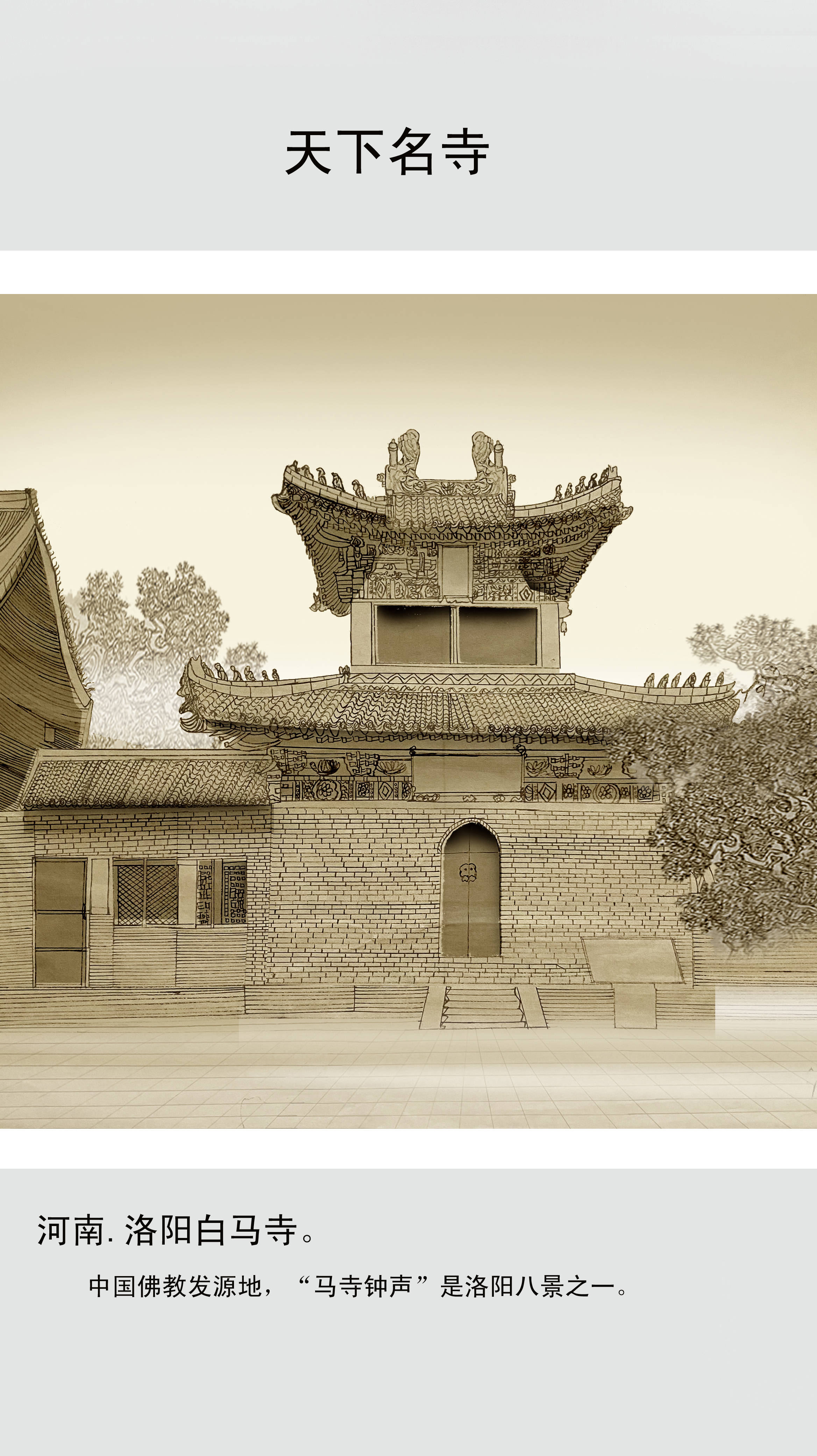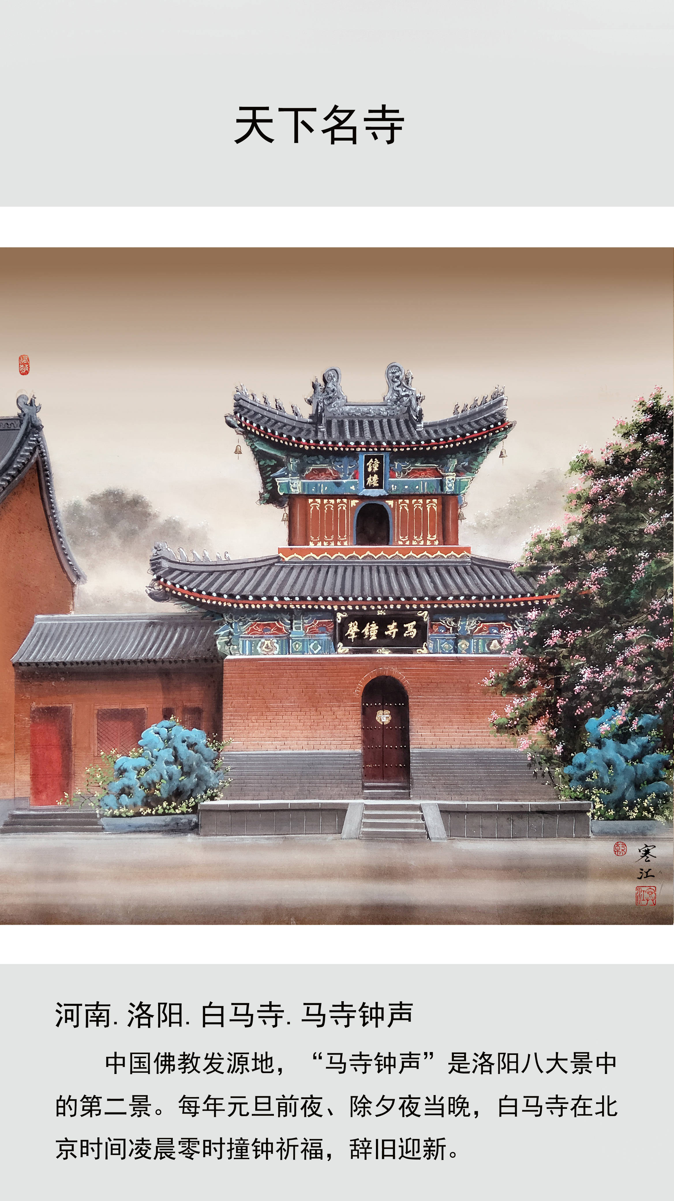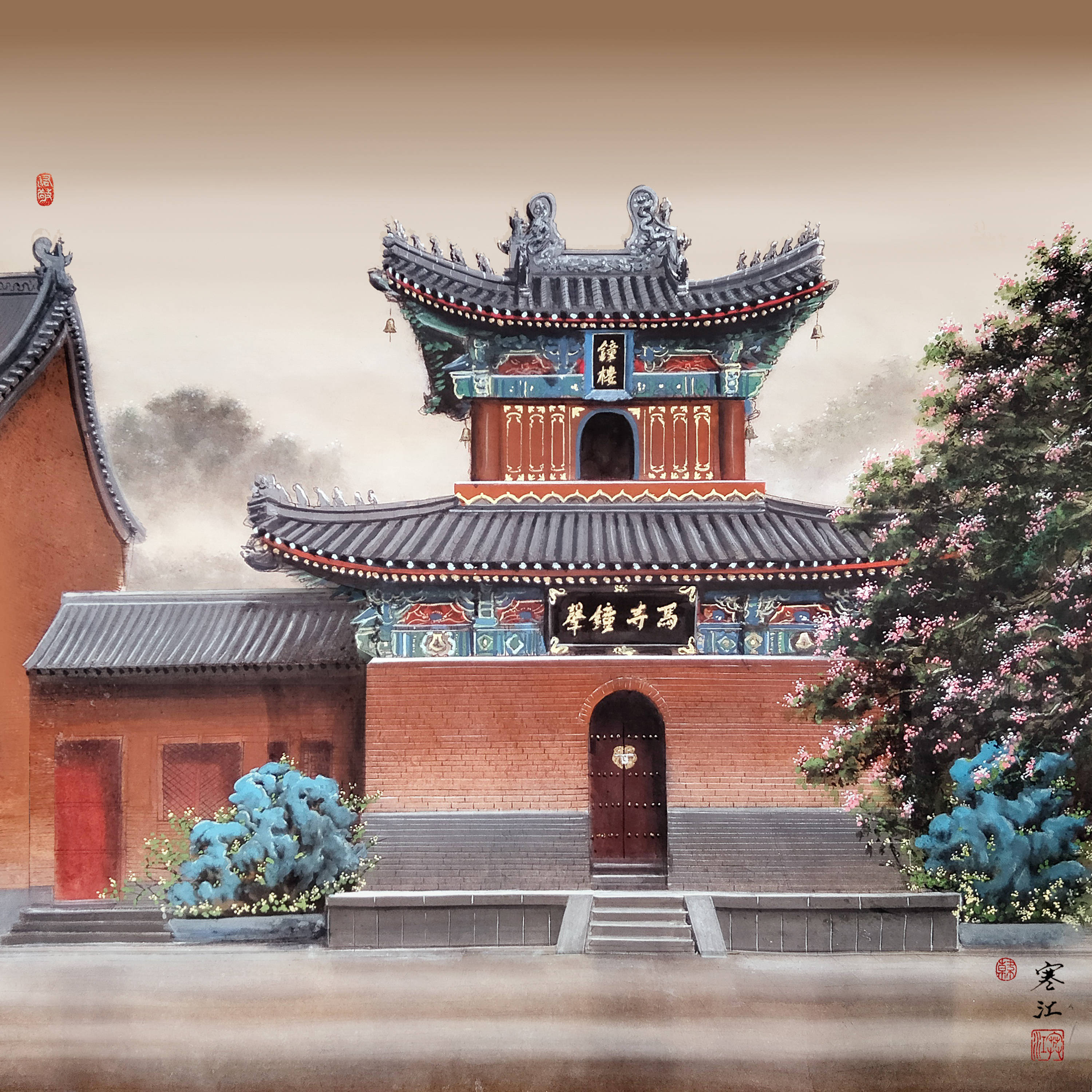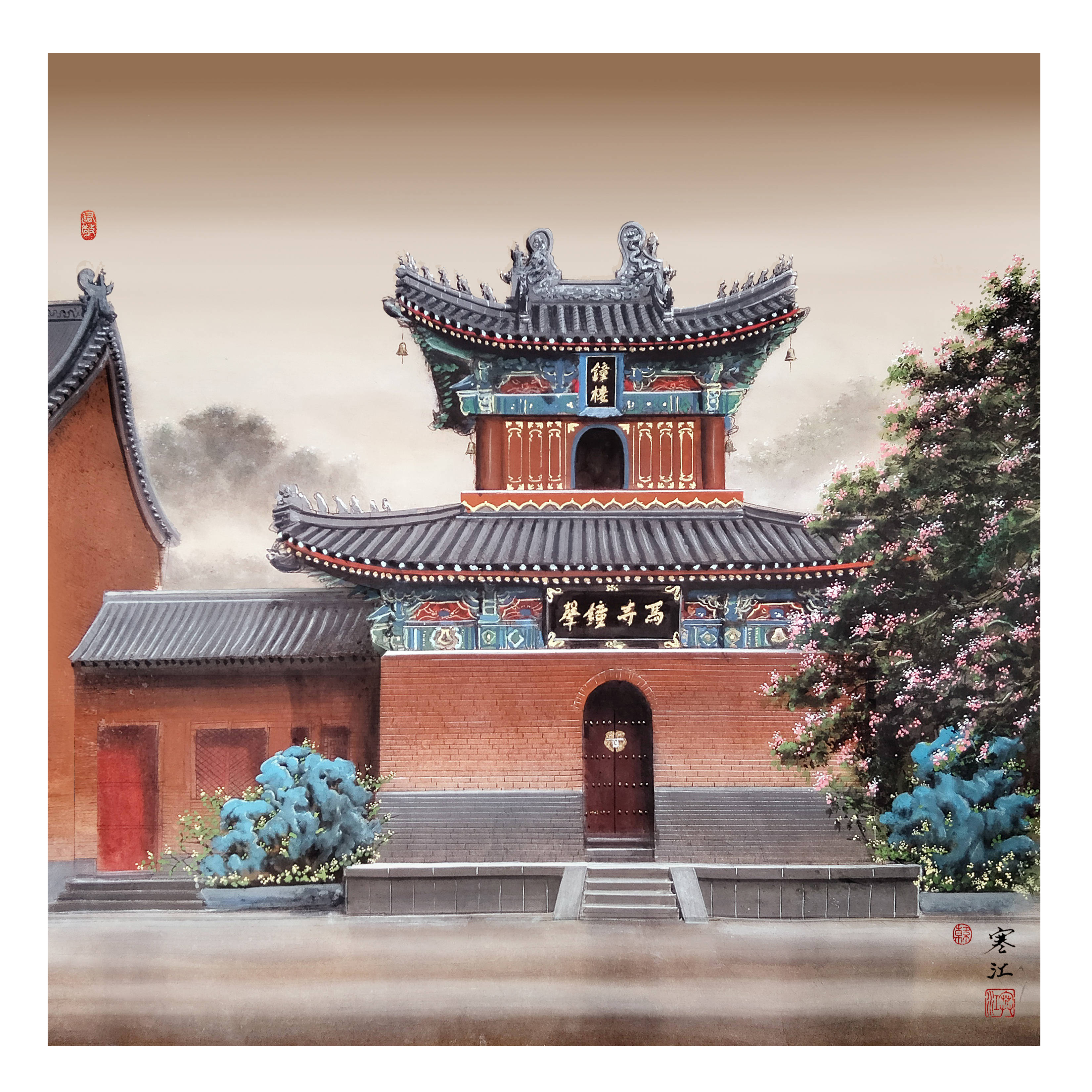 界画寒江---工笔界画《河南.洛阳白马寺.马寺钟声》, 尺寸:66x66cm,纸质:仿古熟宣。