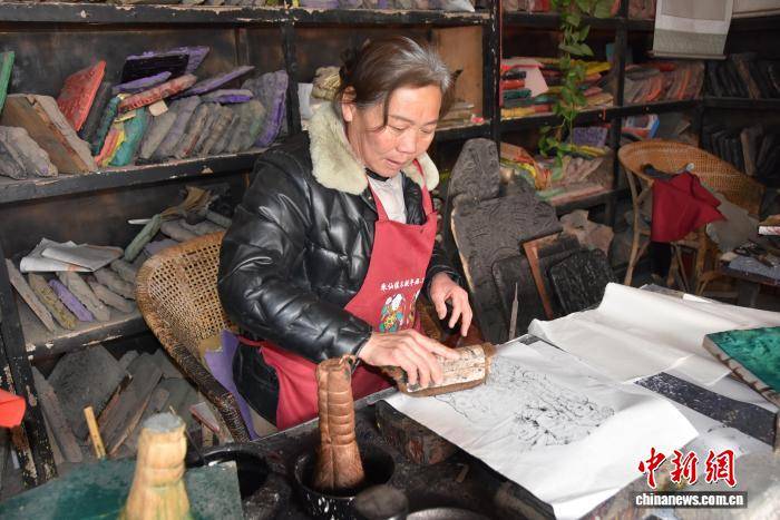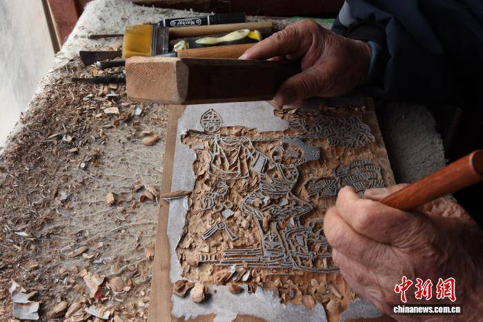 2月5日,河南开封,朱仙镇木版年画手工艺人忙着赶制年画。朱仙镇木版年画起源于唐代,兴盛于宋代,明清时期达到鼎盛,于2006年入选第一批国家级非物质文化遗产名录。图为朱仙镇木版年画“万同老字号”第四代传人张连生正在木版雕刻。 王宇 摄