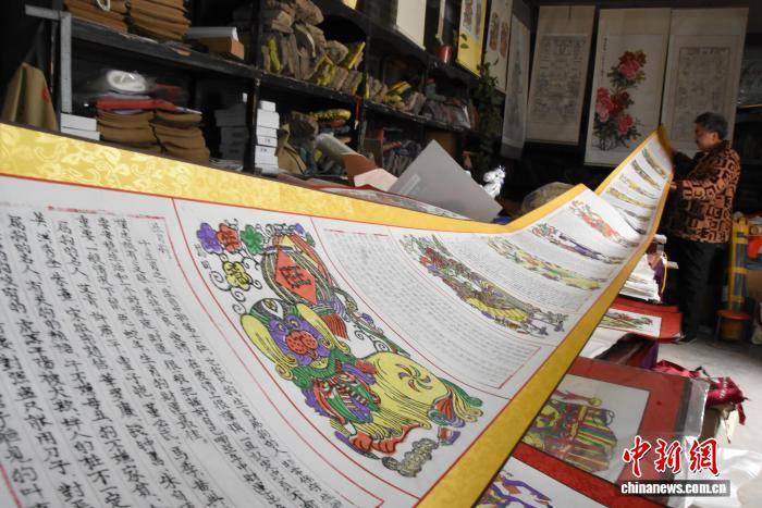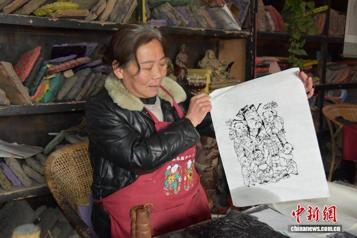 图为朱仙镇木版年画手工艺人展示印制的初稿年画。 王宇 摄