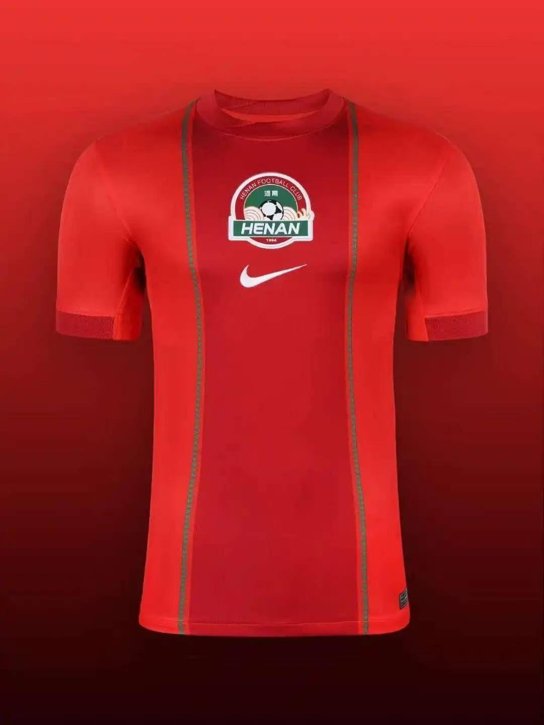 新赛季河南队主场球衣以红色基调与绿色纹理,交织出河岸林木的延展节奏,将城市自然气息与俱乐部精神融入同一画面。