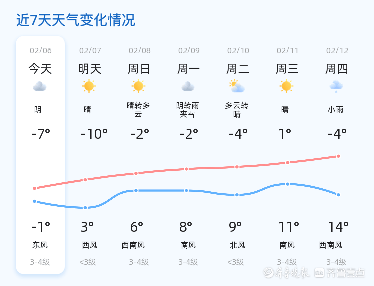 今天是2月6日,星期五,农历十二月十九。德州地区的天气以阴为主,气温较低,全天温度在-7℃到-1℃之间,东北风2级,空气湿度63%,PM2.5指数51,空气质量良好。今天德州各区的天气情况基本一致,均为阴天,温度较低,市民外出需注意保暖。 明天天气将转为晴天,气温有所回升,但早晨气温较低,为-10℃,白天最高气温为3℃,风力有所增强,西风3-4级。与今天相比,明天天气转晴,但早晨依然寒冷,市民需做好防寒准备。 未来三天,德州天气将呈现先晴后阴的趋势。明天晴天,气温回升;周日晴转多云,气温进一步上升,最高气温可达6℃;周一阴转雨夹雪,气温波动较大,市民需关注天气变化,做好出行准备。特别提醒市民,周一的雨夹雪天气可能对交通造成一定影响,出行时请注意安全。 温馨提示