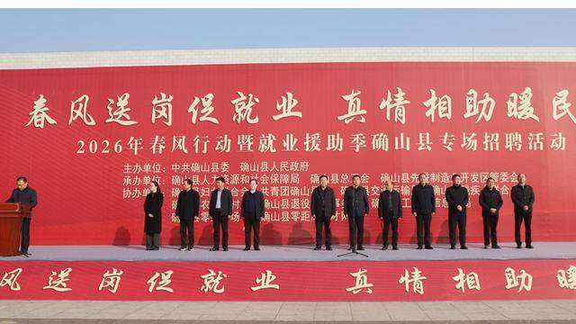 春日启序,暖意渐浓。2月5日上午,2026年春风行动暨就业援助季确山县大型招聘活动正式启幕。县长蒋贵印深入现场指导招聘工作。市人社局二级调研员李新,副县长杨东荣,县政协党组成员、县总工会党组书记王仲秋,县开发区管委会主任张杰出席活动。