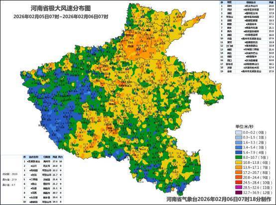 大河网讯(记者 莫韶华)2月6日,记者从河南省气象局了解到,据监测数据显示,2月5日7时至6日7时,我省北部、中东部、南部出现6到7级大风,局地9到10级。风速前三站分别为:禹州市无梁卧龙山27.9米/秒(10级)、平顶山市凤鸣园22.2米/秒(9级)、平顶山市刘沟21.7米/秒(9级)。