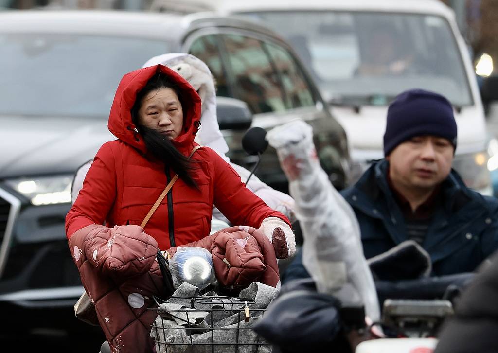 2月5日,市民在街头出行。当日,受新一轮寒潮天气影响,北京气温大幅下降。