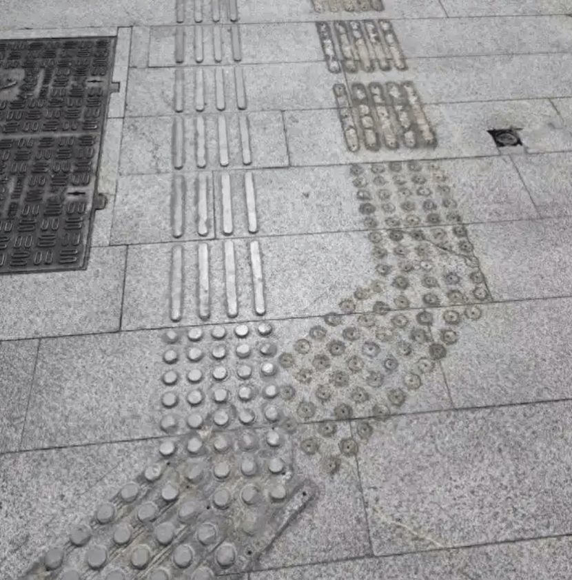 除了被占用,盲道的“健康状况”也堪忧。很多盲道的砖块都破了、裂了,有的甚至掉了一块,走在上面容易绊倒;还有不少砖块的凸起感都没了,视障朋友摸上去没感觉,自然没法靠它指路。好好的盲道,就这么成了“摆设”。